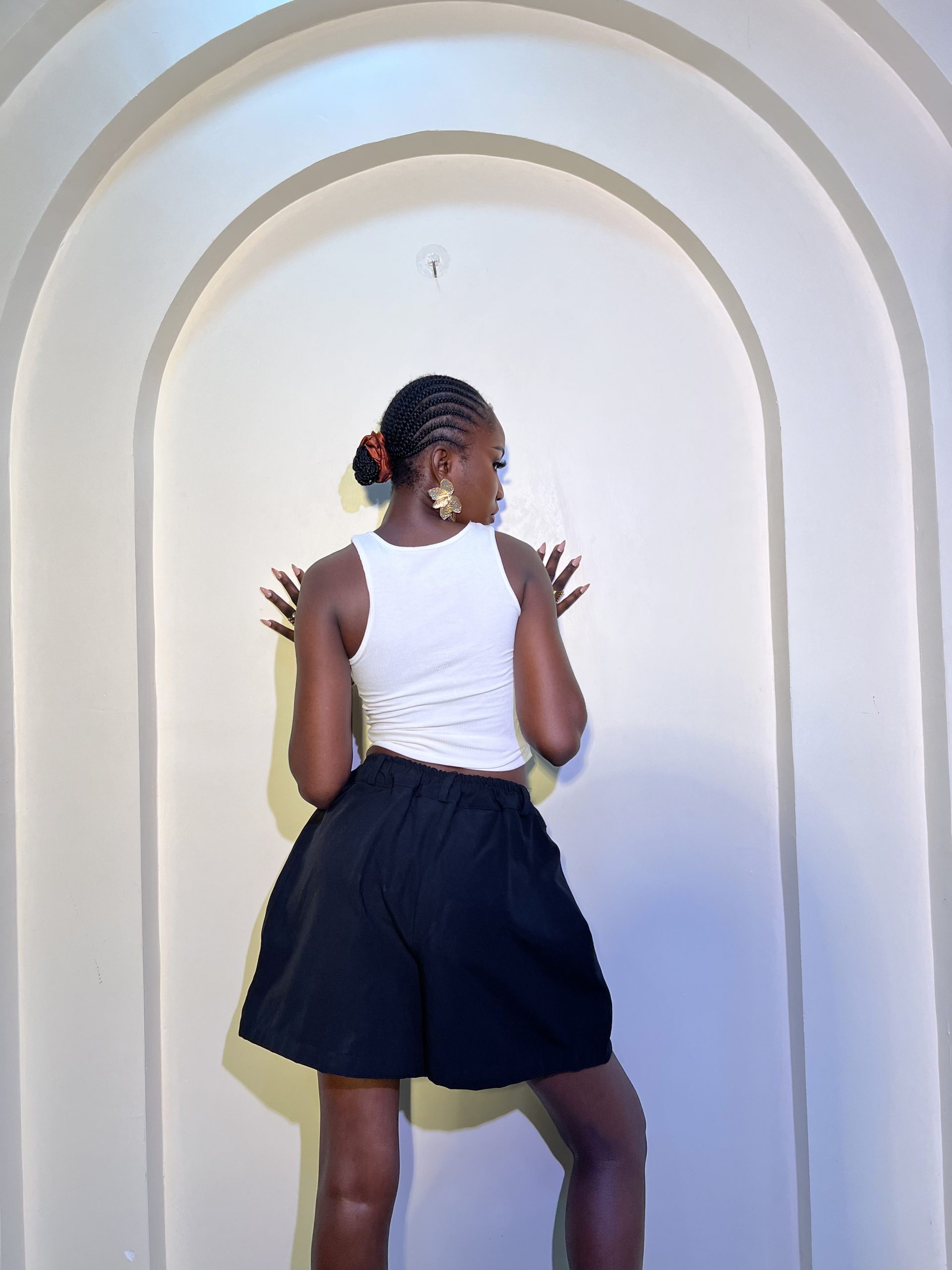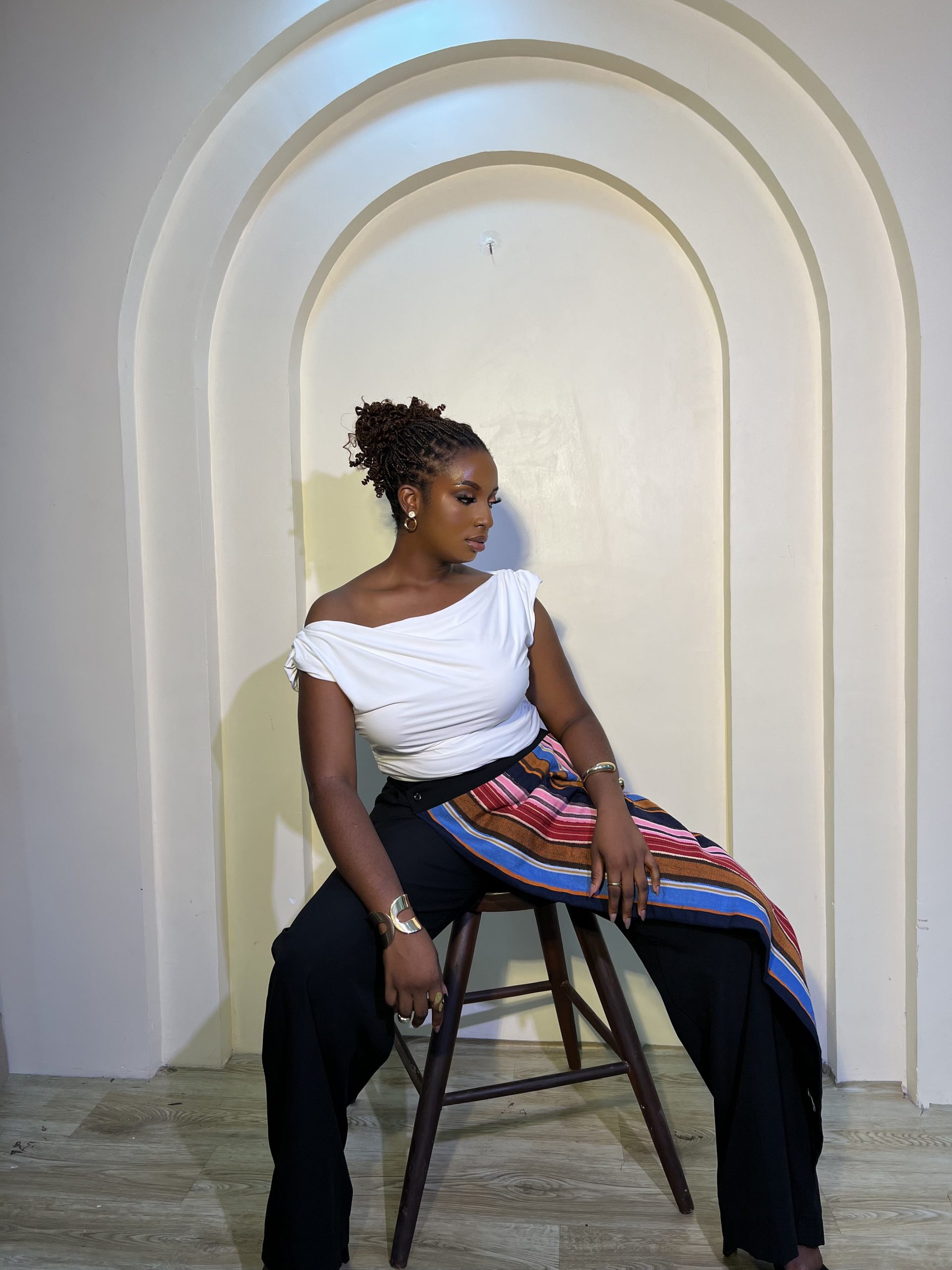 Rodiat is 5’9 and wearing Awero skouser in size 10 with a custom made Tkbabe tank top